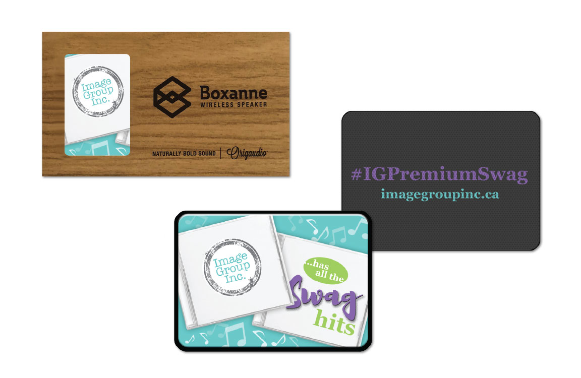 Description: Bluetooth speaker client giveaway for a promotional products company.